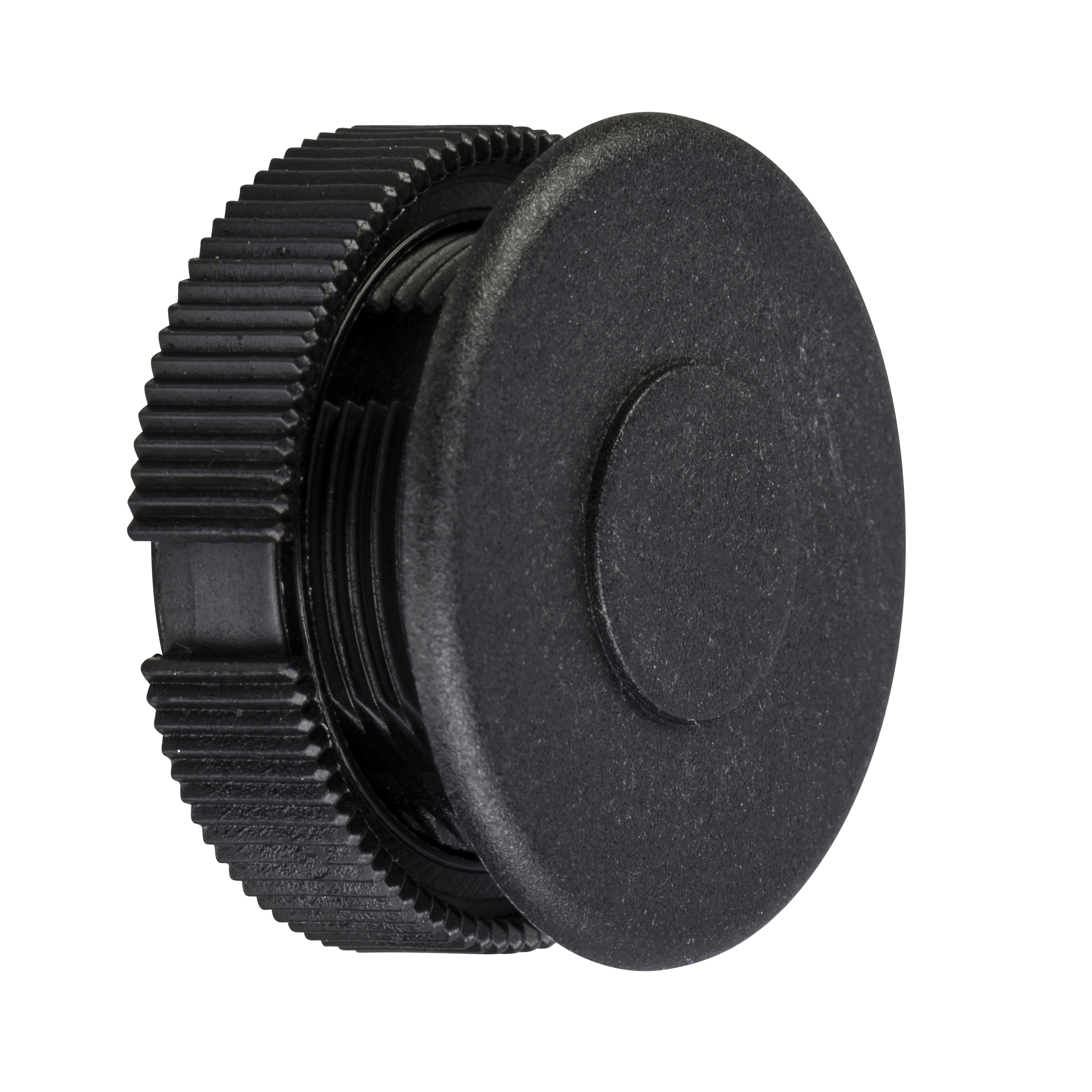 This blanking plug is a separate component of the range of pendant control stations, type XACD. It features a black blanking plug with seal and fixing nut. It is fitted for diameter 22,5mm cut-out.