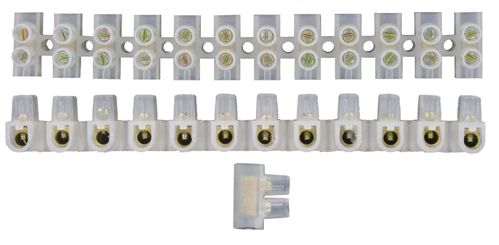 Strip of 12 transparent flexible polyethylene connectors with brass inserts.